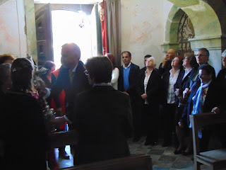 À mui solene e vivida cerimónia presidiu o Senhor Bispo de Angra e concelebraram o estimado Dom Avelino Bettencourt e o ilustre Monsenhor José Teixeira Alves, Adido da Nunciatura Apostólica do Vaticano em Portugal. Presentes as Confrarias e Misericórdia da Ilha, e, através de mim, simbolicamente, a Ordem de Malta, da qual é Capelão Monsenhor Saldanha, Amigo, de uma vida inteira, e Compadre, Padrinho de Crisma do Gonçalo, o qual executou, ao magistral Órgão de Tubos, algumas peças musicais nos momentos solenes da feliz Celebração. PG